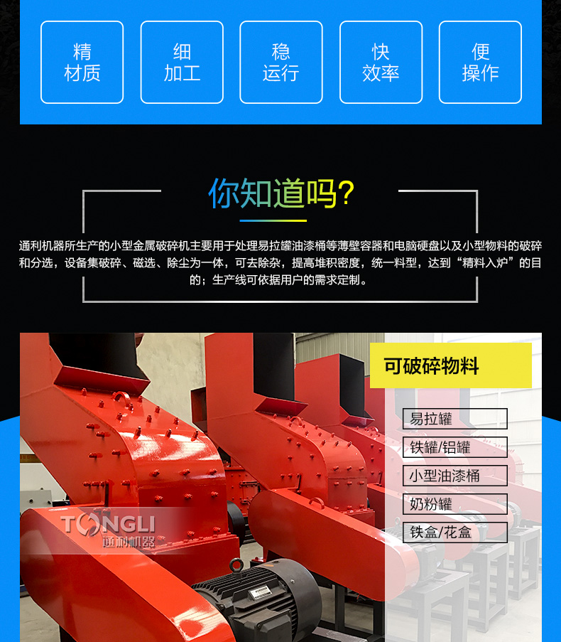 河南通利6050破碎机由主机一台,生产线一条,磁设备一台,输送机一台,电机一台组成,厂家可为您提供系列化的金属破碎机和整个破碎工厂的工艺装配配置。用于破碎轻薄料如汽车外壳混合废金属,包括金属打包块的破碎,机器通过不断、化以及经验的积累,掌握了设计和制造金属破碎机的技术诀窍,从而设备长期可靠地低成本运行。