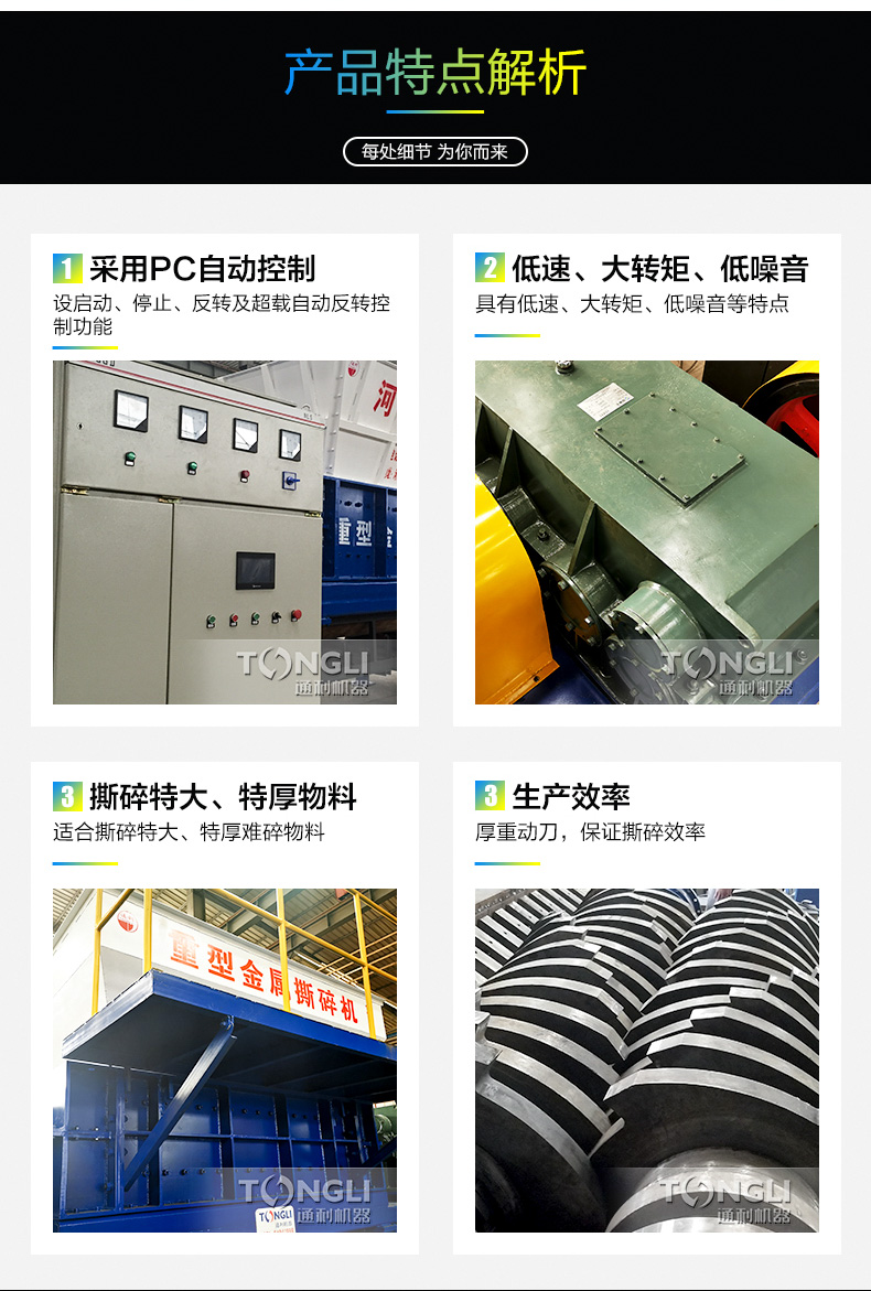 双轴撕碎机又名剪切式撕碎机机械配置:撕碎刀片组、承载箱体、箱体支架、进料系统、动力系统,电器控制系统组成的机器通过剪切、撕裂和挤压达到减小物料尺寸,这种撕碎机广泛应用于废塑料、废橡胶、废金属木材和其它体积废弃物我公司将欧美制造该类设备多年的经验引进,并根据实际情况进行改进,,推出技术成熟和设计的双轴撕碎机系列,为的废物回收利用前期的破碎,减容处理提供质量可靠的设备。
